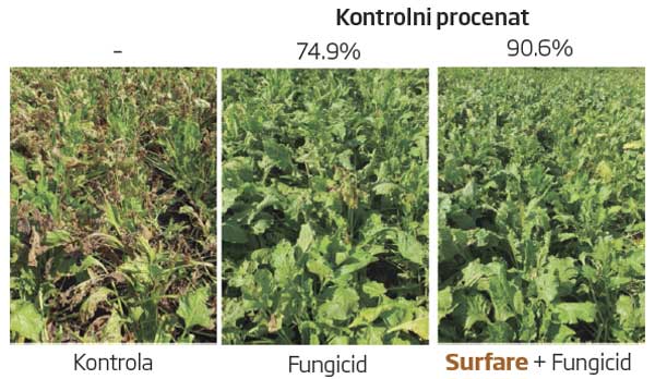 Sinergistički efekat Surfare-a u kontroli pegavosti listova uzrokovanih Cercospora beticola u usevu šećerne repe sorta Eduarda KWS, Stara Pazova i Temerin, Srbija; 2021