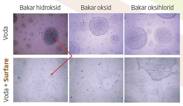 Napomena: Preporučuje se da se prvo odredi približna doza koja vam je potrebna, dodajući Surfare malo po malo u litar vode. Dakle, ako se 1 ml Surfare-a koristi za promenu boje vode do ružičaste boje, tada će biti potrebno 100 ml na 100 l vode.